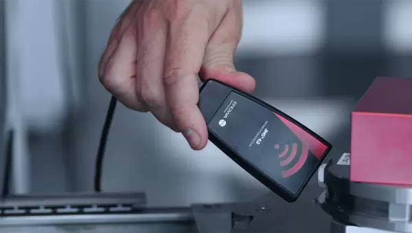 Die manuelle Zuordnung von Objekten mittels RFID-Chip gewährleistet eine eindeutige Identifikation zur prozesssicheren Verwaltung von Werkstücken und Elektroden. Durch diese eindeutige Zuweisung von Rohmaterialien und Paletten werden Fehler vermieden und ein schnelles einrichten der Maschine gewährleistet.