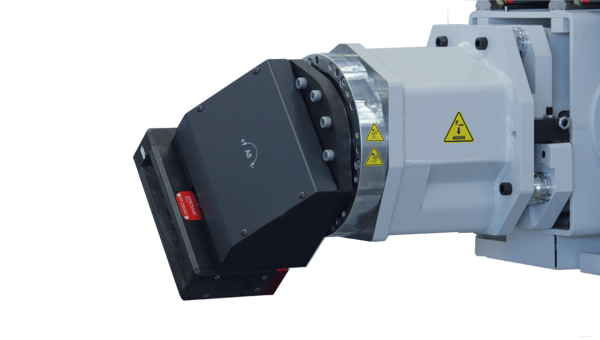 No matter if the pallet needs to be inserted horizontally (table) or vertically (tomb-stone); With the 400 kg capacity swivel axis, the orientation makes no difference to the robot.