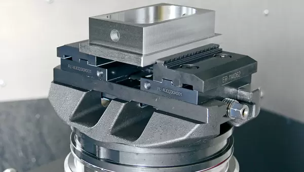 An integrated interface enables the blank vise to be clamped into the following EROWA chucks: PowerChuck P, ProductionChuck 210 Combi and MTS Single Chuck.