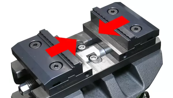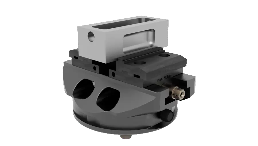 The blank vise is characterized by a high degree of centering precision and repeatability. The workpiece can be centrically clamped with bolts on both sides.