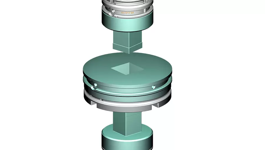 Le système d'alignement EROWA PM Tooling permet d'aligner précisément les mandrins des poinçons inférieurs et supérieurs par rapport au mandrin de matrice sur la machine de pressage des poudres.