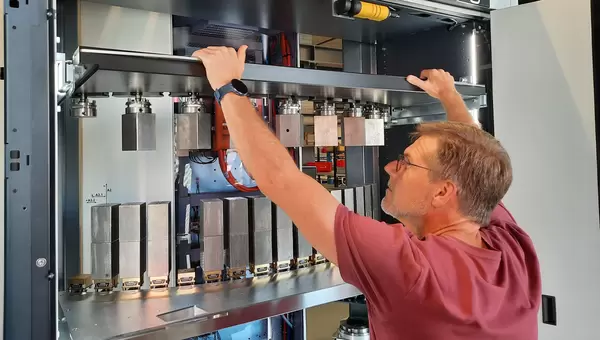 Plus de 500 palettes EROWA de différentes tailles peuvent être stockées dans les magasins. Les niveaux des magasins peuvent être réglés exactement selon les besoins.